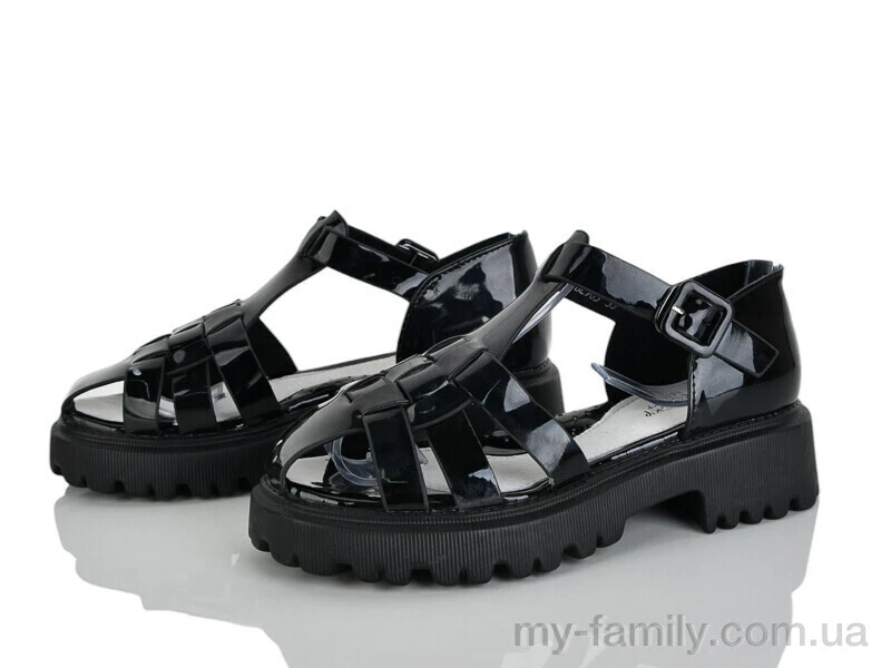 Босоніжки штучний лак чорний діти дівчинка 16885