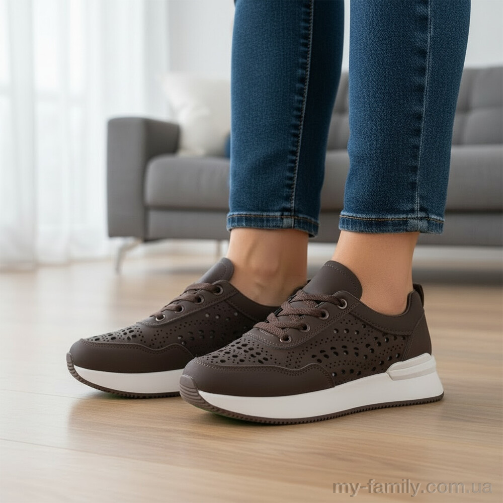 Кросівки штучна шкіра коричневий жінки - 8376