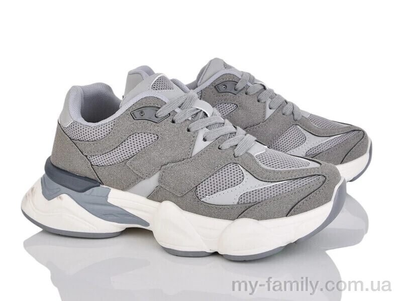 Кросівки штучна замша-текстиль сірий жінки -